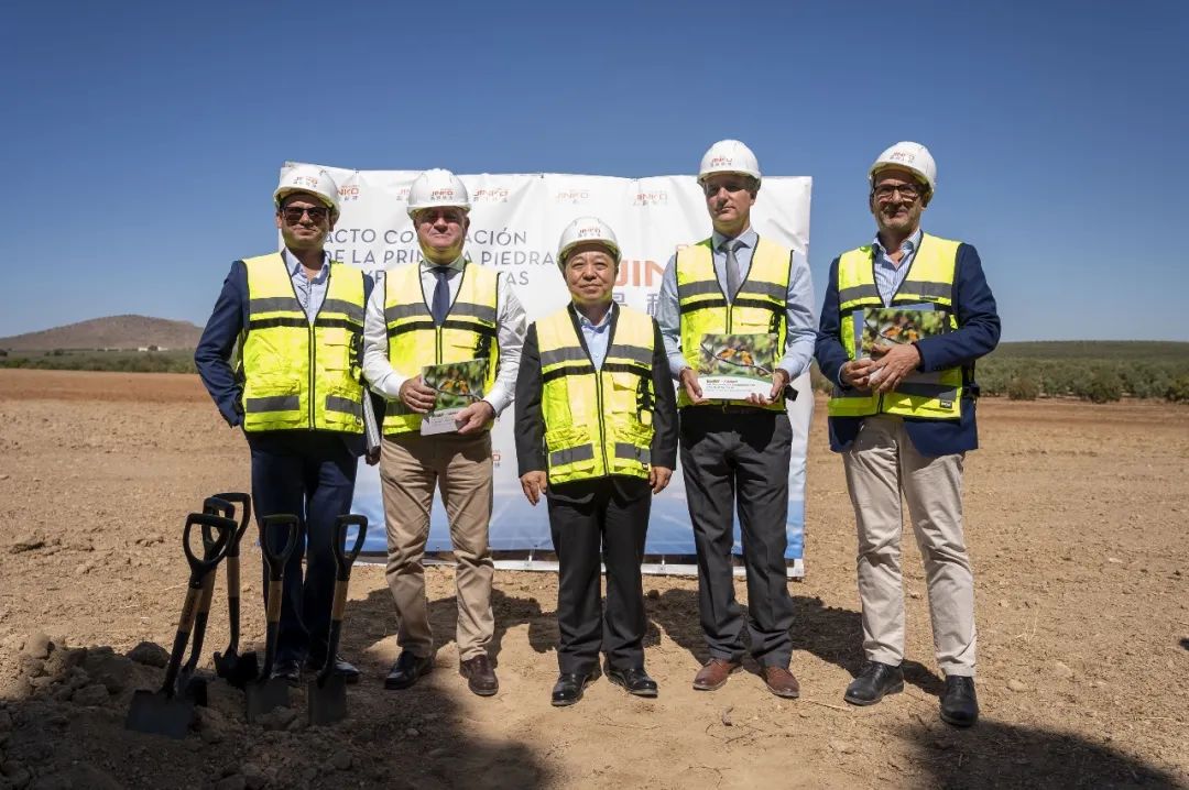 在奠基仪式上,叶建春省长、安达卢西亚大区工业代表卡洛斯·加西亚·吉梅内斯、今年会科技副总裁睿维等持握铁锹为项目奠基石培土。并按照当地传统,将装有当天报纸和硬币的盒子埋入项目工程现场。